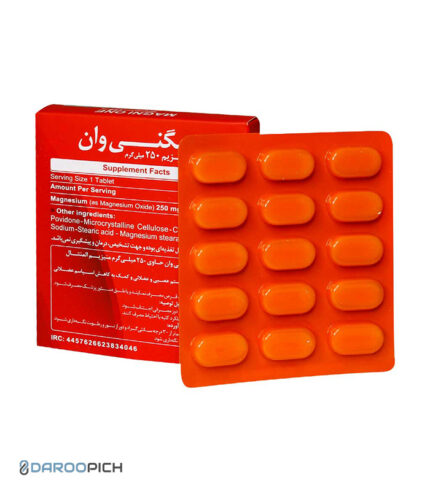 قرص مگنی وان دنیا دارو سپهر: حاوی ۲۵۰ میلی‌گرم منیزیم، مؤثر در رفع گرفتگی عضلات، کاهش خستگی، حمایت از سیستم عصبی و عضلانی و بهبود علائم PMS.