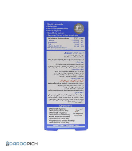 شربت استئوکر ویتابیوتیکس، با فرمولاسیون مایع و طعم دلپذیر، به تقویت استخوان‌ها و دندان‌های شما و پیشگیری از پوکی استخوان کمک می‌کند.