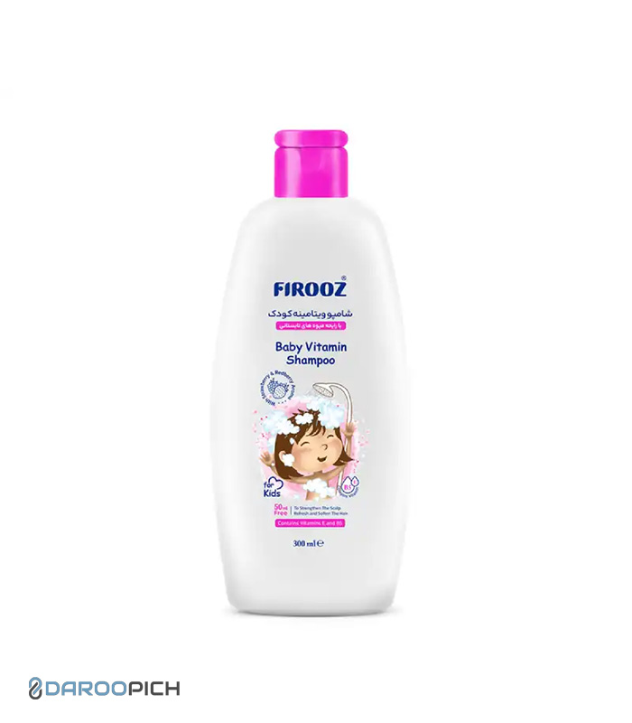 شامپو ویتامینه کودک فیروز: مراقبت ملایم و مغذی برای موهای کودک با رایحهای شادابکننده از میوههای تابستانی.