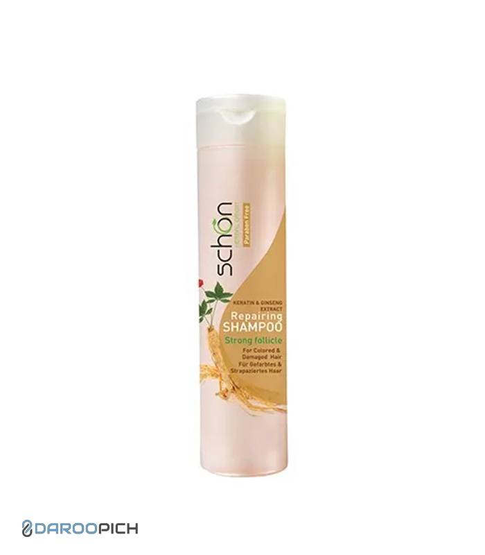 شامپو کراتین و جینسینگ شون: فرمولاسیونی غنی برای ترمیم، تقویت و درخشانسازی موهای آسیبدیده با کراتین و جینسینگ.
