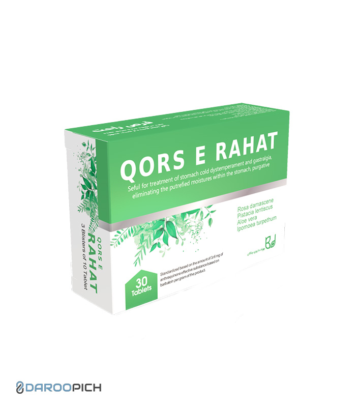 قرص راحت بهپاد دارو مکمل گیاهی سنتی با گل سرخ، مصطکی، صبر و تربد, استاندارد شده بر اساس آنتراکینون, کمک به بهبود سردی معده، دافع اخلاط فاسده و مسهل طبیعی