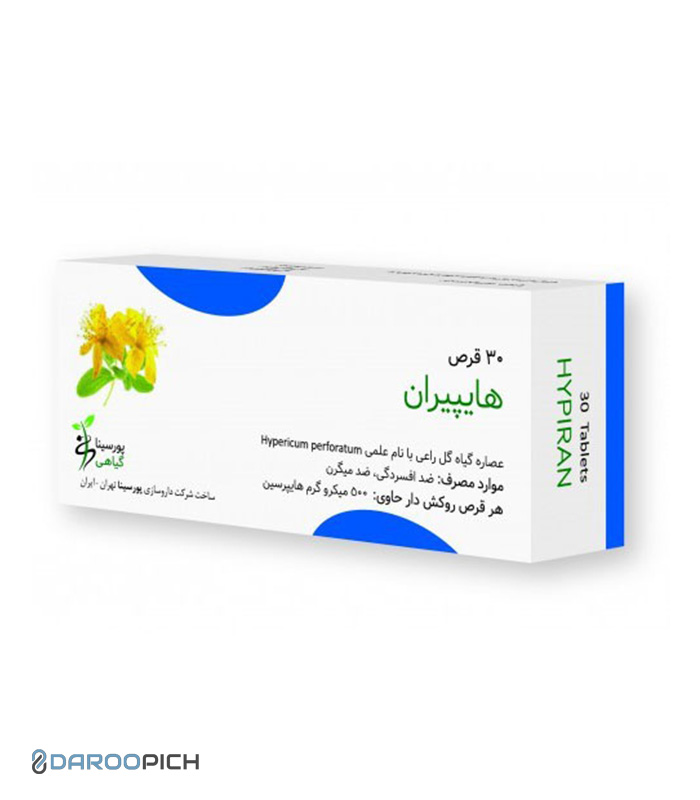 قرص هایپیران یک داروی گیاهی دارای عصاره گیاه گل راعی است که یک ضدافسردگی طبیعی در درمان اختلالات خلقی خفیف تا متوسط میباشد. گل راعی از دیرباز در طب سنتی اروپا برای بهبود حالات روحی، کاهش اضطراب و تنظیم خلقوخو به کار رفته است و امروزه نیز اثرات آن در مطالعات علمی متعدد تأیید شده است.
