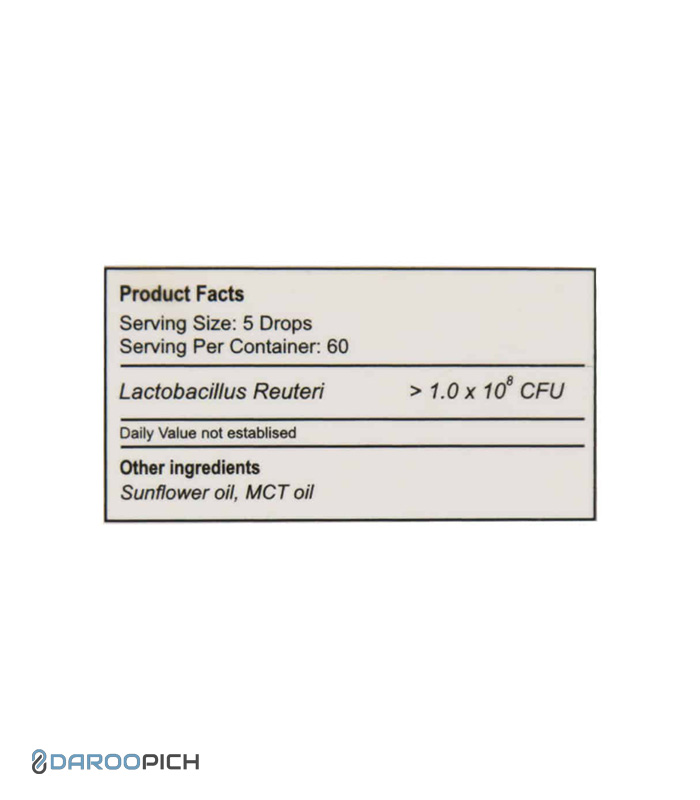 | سویه پروبیوتیک | Lactobacillus reuteri با حداقل ۱ میلیارد CFU در هر دوز |