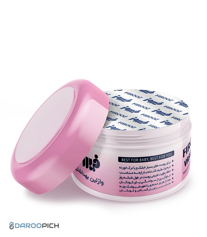 وازلین کاسهای کودک فیروز: محافظی ملایم و مرطوبکننده برای پوست حساس کودک، ایدهآل برای جلوگیری از خشکی و ادرار سوختگی.