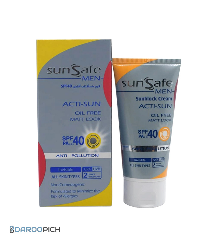 کرم ضد آفتاب فاقد چربی SPF40 آقایان سان سیف برای انواع پوست 50 گرم