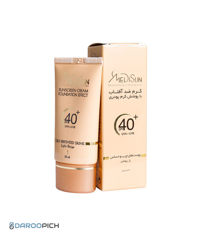 کرم ضد آفتاب SPF40 مدیسان با رنگ بژ روشن، محافظی کامل برای پوست چرب است. هم ضد آفتاب است و هم پوشش رنگی طبیعی و مات دارد. موجود در داروپیچ.