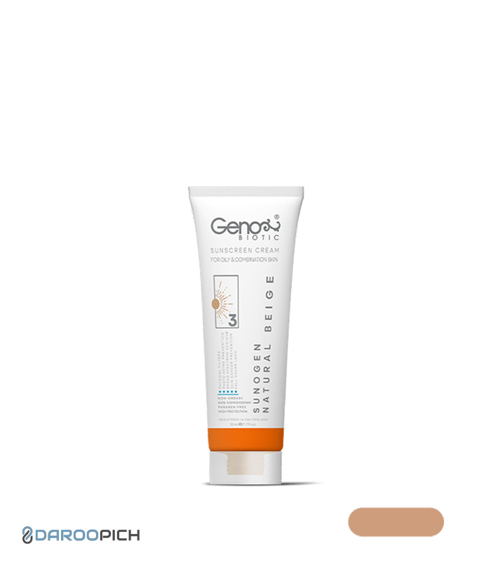 کرم ضد آفتاب SPF50 سانوژن ژنوبایوتیک بژ طبیعی مناسب پوست چرب