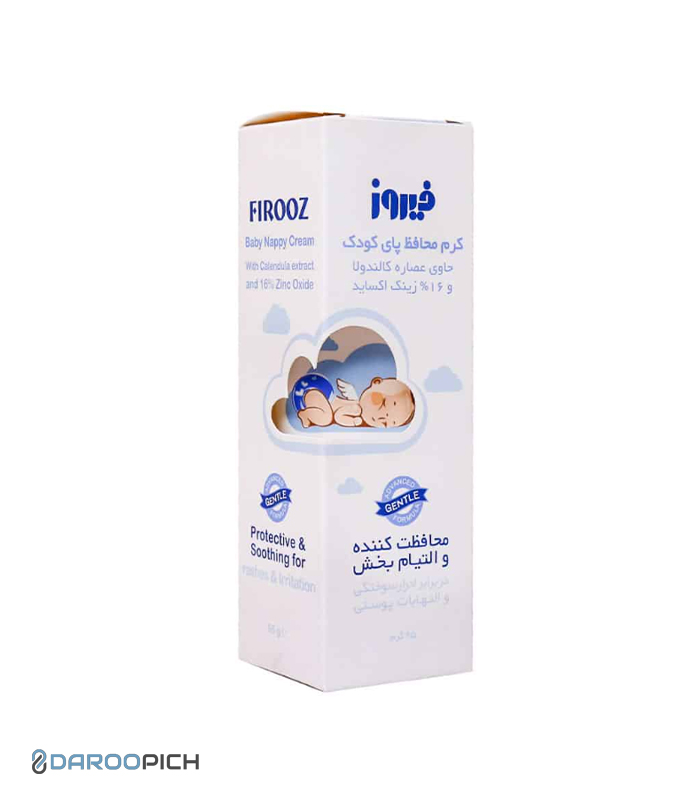 =””>t=”4179″ data-end=”4327″>>کرم محافظ پای کودک فیروز حاوی کالندولا و زینک اکساید، مناسب جلوگیری از سوختگی پوشک و تسکین سریع التهاب و قرمزی پوست کودک.